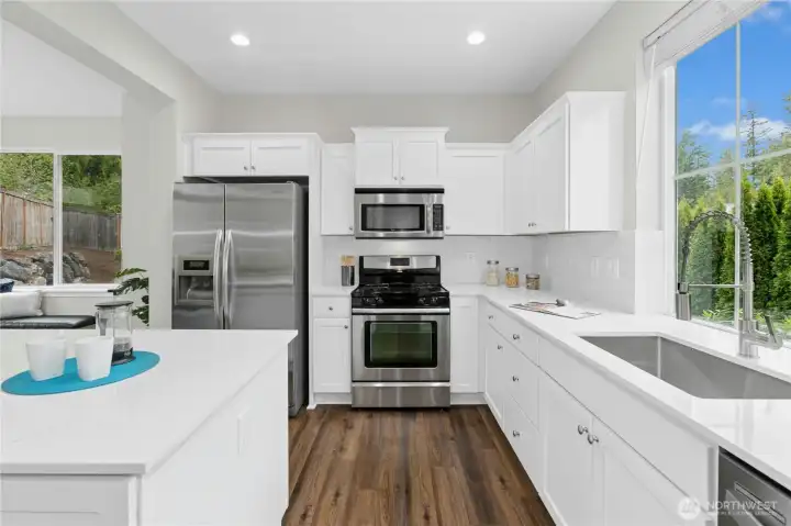Nestled in coveted Hunter's Ridge neighborhood, this stunning 4-bed Camwest built home has the largest yard & is a short walk from Schools, Parks, Klahanie Shop Center. 4-min drive from P&R, I-90. Newly remodeled kitchen & baths exude modern sophistication, complemented by new carpets & freshly painted interior + exterior. A perfect blend of elegance & convenience. Main floor boasts an open layout with family room seamlessly flowing into kitchen & dining + Great room that can be used as formal dining instead. Upstairs 4 Beds. Backyard is an entertainer's dream given its size and privacy. High ranked schools, great location, plenty of natural light, makes for an easy choice to call it home! Pre-Inspected, Move-in Ready, Priced to Sell!