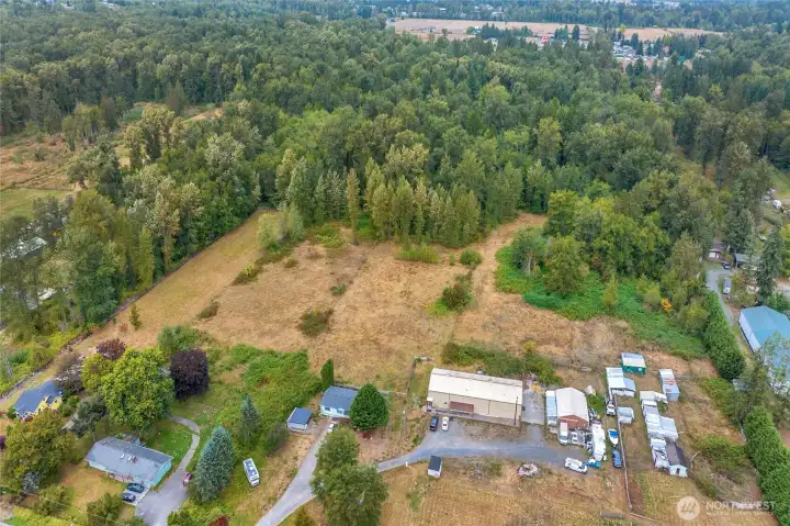 Remarkable opportunity to own rental income producing property & also County Lot status of 2 additional parcels all on 17+ acres of land. The land is mostly level w/approx. 7 acres in pasture for farm animals or crops, the balance is wooded with a small creek. Double wide 3 bedroom 2 bath, 1500 sq ft is in nice shape & is rented. The large barn/shop building approx. 6000 sq. ft. with a full loft is also rented. The other smaller shop building approx. 480 sq. ft. & RV site is rented as well. Another home could be added to this property with the proper permits and will require a septic system and well. Plenty more potential for your own ideas regarding this property. This Property has another address, 2415 - 116th St NE Tax# 00602500100300.