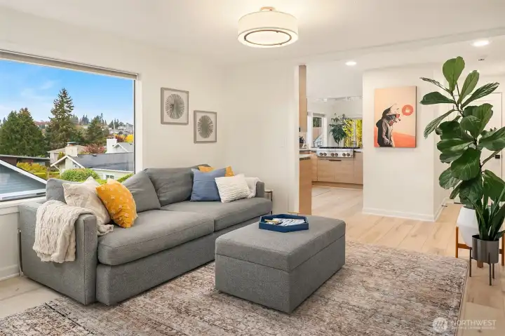 Perched in the hills of Magnolia, this inviting home captures sweeping views of Puget Sound and the Olympic Mountains, offering a front-row seat to glowing sunsets and passing sailboats. The heart of the home, a beautifully remodeled kitchen, blends warmth and sophistication with custom finishes, quartzite counters, and a seamless flow to open living and dining spaces. Step onto the private, vine-covered deck, perfect for gatherings with friends or peaceful evenings under the lights. Flexible spaces provide the ideal setup for working from home while still soaking in the view. A rare blend of character and comfort, this is Magnolia living at its most inspiring.
