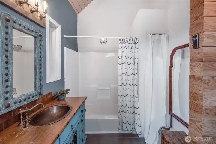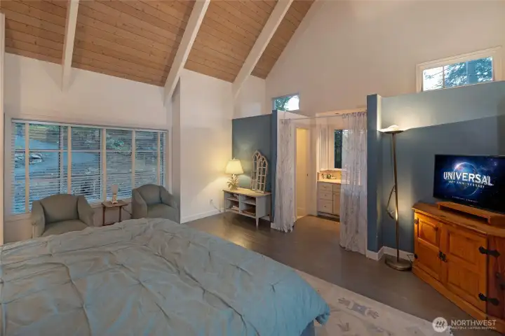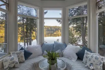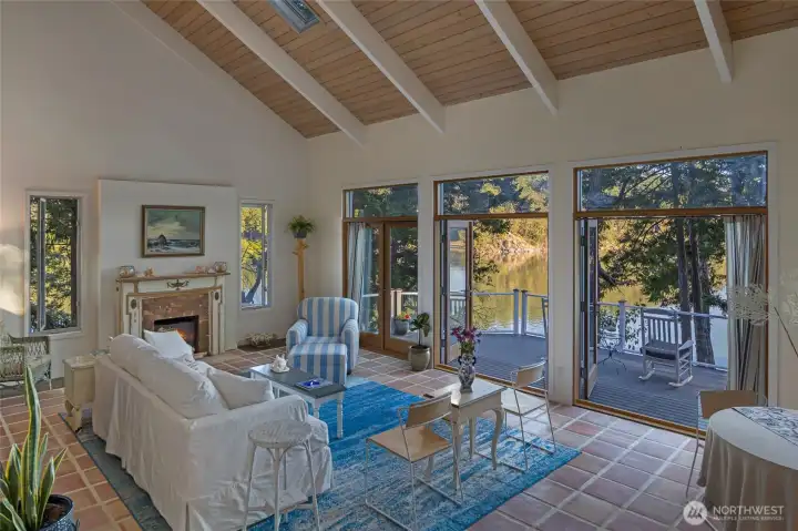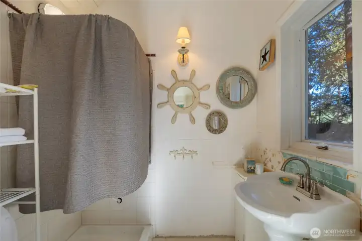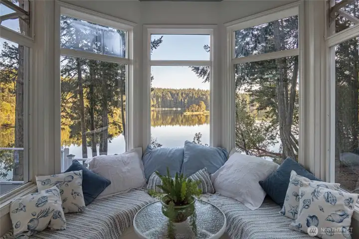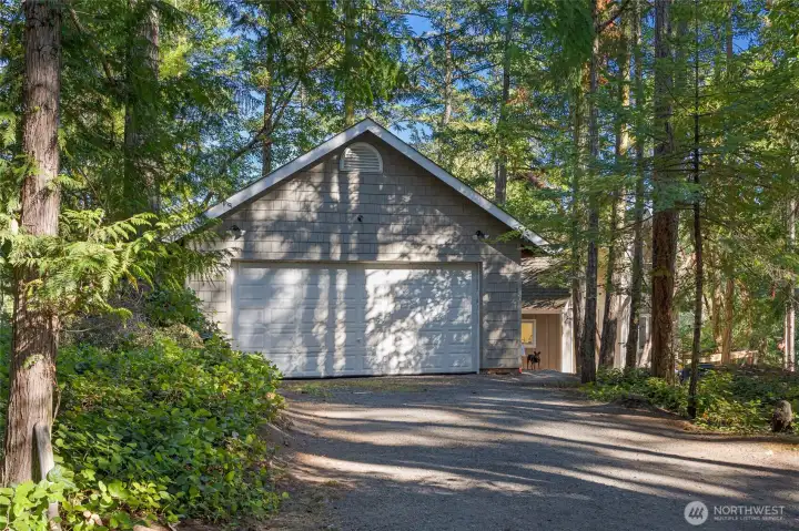 Waterfront home on Mitchell Bay offers charm, comfort, and stunning views. The main house features two primary bedrooms with en-suites, high ceilings, a kitchen with dining nook, and French doors that open to a spacious deck overlooking calming tidelands. Enjoy modern updates including a newer roof, fiber internet, and a sophisticated rainwater catchment system. A detached guest studio with sleeping loft provides additional space for visitors or creative use. Property includes tidelands, making this an ideal retreat to relax and take in the serene bay setting.