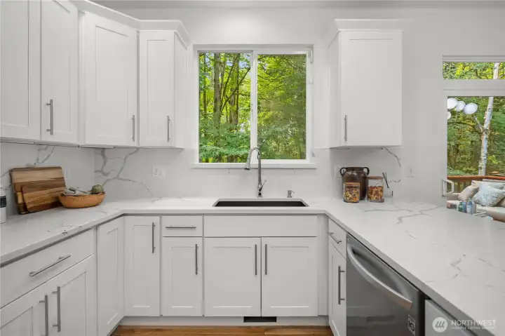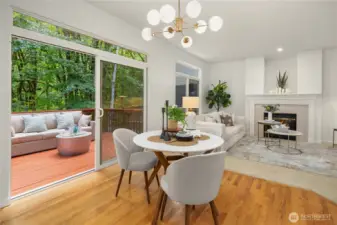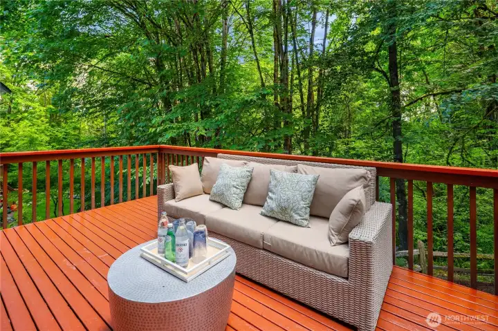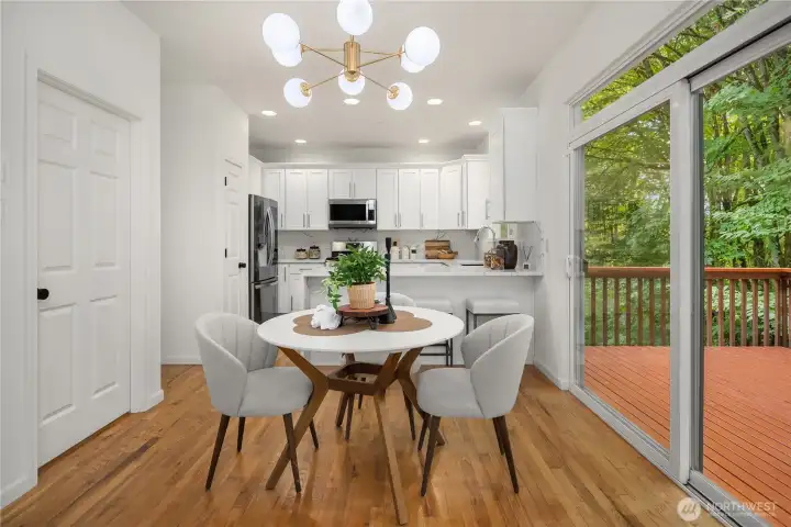 Beautifully updated home on a quiet cul-de-sac in the heart of Woodinville! This better-than-new 4 bed, 2.5 bath residence offers sun-filled living spaces, generous room sizes, and a luxurious primary suite with 5-piece bath and soaking tub. Enjoy cooking in the newer remodeled kitchen with wood cabinetry, crown molding, and gas cooktop. Step out to the private, south-facing entertainment-sized deck overlooking a protected natural area. Features include newer roof, newer AC/Furnace, newer exterior paint, oversized 2-car garage, and huge basement storage, one extra unfinished room can be converted to gym or home office. Just minutes to Burke-Gilman Trail, Wilmot Gateway Park, Wine Country, I-405, and top-rated Northshore schools.