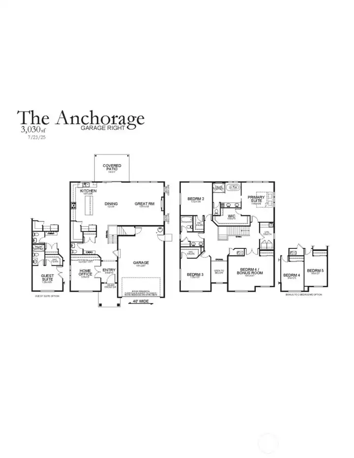 The Anchorage at 3,030 sq. ft. is a striking five-bedroom, 3.5 bath home is designed to impress with soaring 9-foot ceilings and a bright, open floor plan. A dramatic two-story entry sets the tone, while the main-floor bedroom with ensuite—easily used as a den or home office—adds exceptional versatility. The spacious kitchen with an oversized island flows effortlessly into the open-concept great room, creating a perfect space for entertaining and everyday living. An extra-deep garage accommodates all your gear. Enjoy year-round gatherings on the Trex-covered deck—no wonder this fan-favorite is among Rush Residential’s most coveted plans.