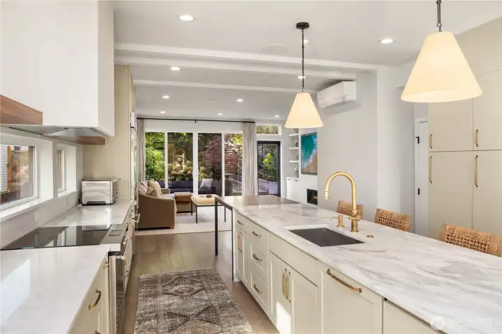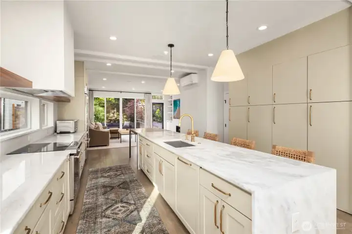 An Urban Sanctuary: Outside In, At Home on Lane // A rare calm in the city, this Central District residence lives both urban and serene. Natural light, terraces, and refined materiality dissolve the line between indoors and out. Designed and curated by Brian Paquette Interiors, the home layers oak, stone, and brushed brass into a warm, modern palette that feels both grounded and elevated. Every fixture and finish is intentional—tailored millwork, gallery lighting, sculptural hardware—crafted for daily living with quiet luxury. A contemporary retreat where the city’s energy meets the ease of home. Within walking distance to parks, cafés, and Seattle’s creative core, yet deeply private. An ethos of refined restraint and livable luxury.
