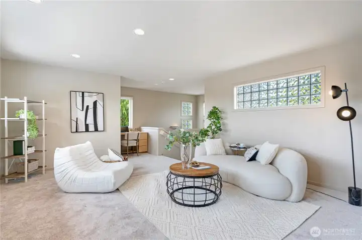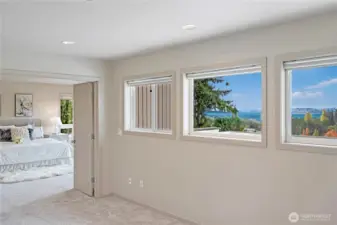 Elevate your lifestyle in this light-filled Kirkland Highlands home, where soaring ceilings frame sweeping views of Lake Washington, the Olympics, and glowing sunsets. Backing to the Cross-Kirkland Corridor Trail, it offers rare privacy with instant access to miles of biking and jogging paths, yet sits minutes from Google, Kirkland Urban, and downtown amenities. A designer great room unites a chef’s kitchen and expansive deck for seamless indoor-outdoor living, while the luxe primary suite captures panoramic water vistas. Recent HVAC and smart-home upgrades, EV-ready garage, and top-rated Lake Washington schools complete this rare blend of location, design, and lifestyle.