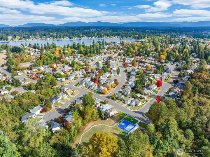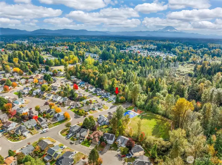 Welcome to highly sought-after Arbor Village, just across from Lake Meridian! This spacious 4-bedroom home sits on a desirable corner lot backing to a beautiful wooded area and a large community park. The main level features a bright kitchen with stainless steel appliances, a gas stove, and a deck perfect for morning coffee or evening BBQs. The large primary suite includes a double-sink bathroom and generous closet space. Downstairs offers a versatile bonus room, fourth bedroom, and ¾ bath — ideal for guests, a home office, or multi-generational living. Enjoy the fully fenced backyard for play or pets, and the unbeatable location close to Costco, Trader Joe’s, Starbucks, and a variety of fun restaurants, parks, and commuter routes.
