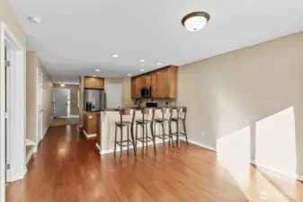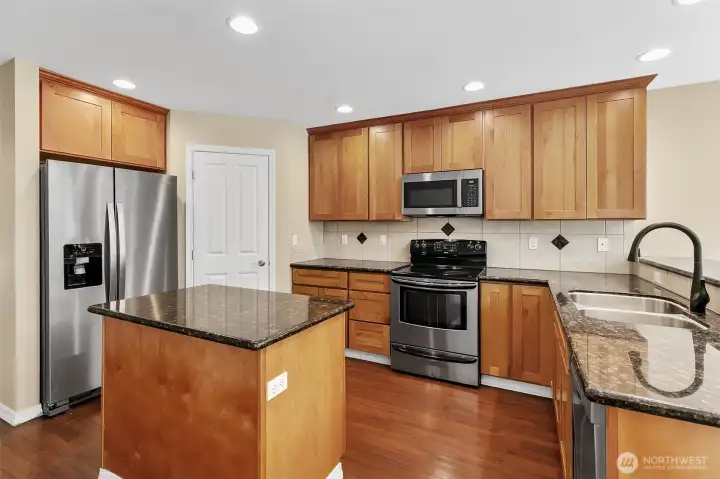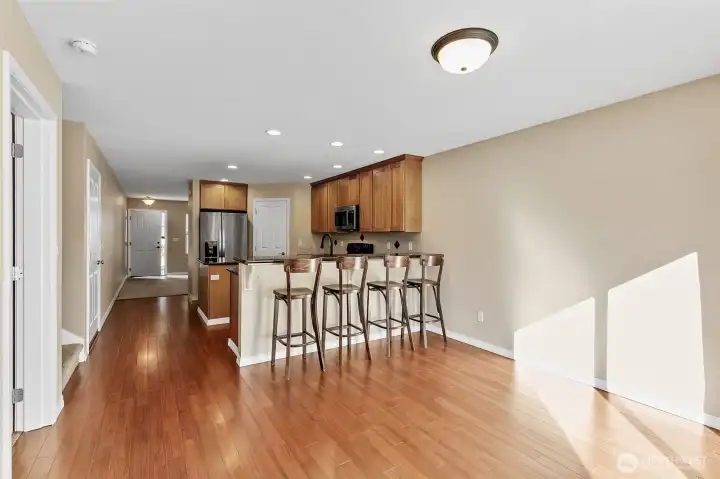 This well-cared-for 3-bed/2-bath condo offers comfort, convenience, and lots of space. Step in through the attached 2-car garage to the main level designed for everyday living. The bright living room flows seamlessly into an open kitchen and dining area. The kitchen features a handy center island, granite counters, an eating bar for four, and stainless-steel appliances for a polished touch. The main-floor primary suite has its own walk-in closet and bath with dual sinks. Upstairs, there are 2 bedrooms, a full bath, and a generous bonus room. Outside, a fully fenced backyard with a patio makes outdoor barbecues a breeze. With engineered hard wood floors, ceiling fans in every room, & a low-maintenance yard, this home checks all the boxes.
