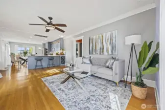 Classic Craftsman with easy access to the heart of West Seattle. This well-loved home blends timeless character with modern living just two blocks from vibrant California Ave SW. The covered porch you've always wanted invites us to the open living level, featuring the all new kitchen gathering areas and past the French doors to the rear covered patio. Entertaining is easy on the expansive patio, tucked away into the garden level fire pit area or in the plush yard. The lower level offers a spacious rec room, two additional bedrooms, and a new ¾ bath for guests or flex space. Best of all, the location features top-rated schools, is close to restaurants and the coveted Sunday Market; making this home the ultimate in-community lifestyle.