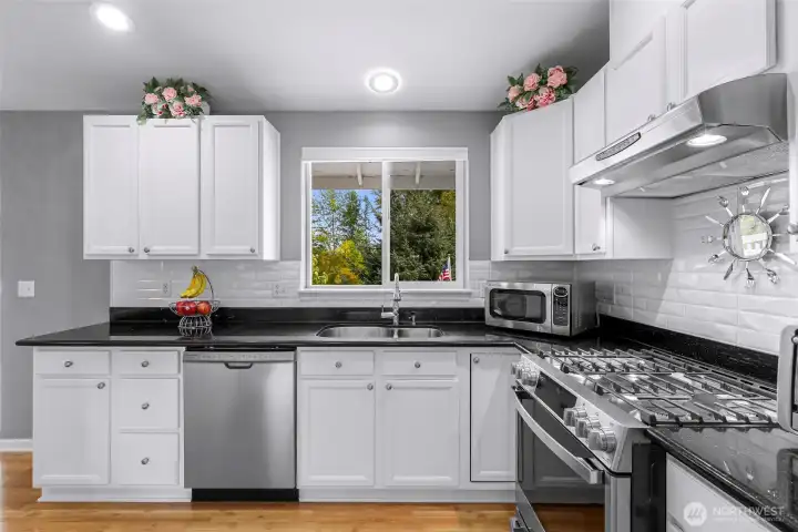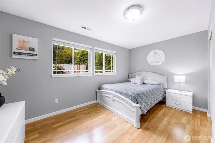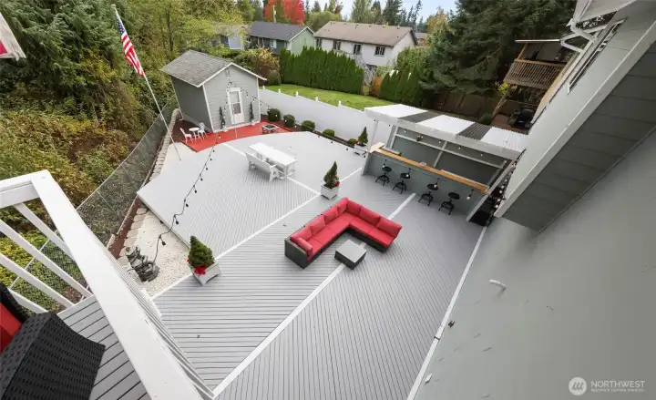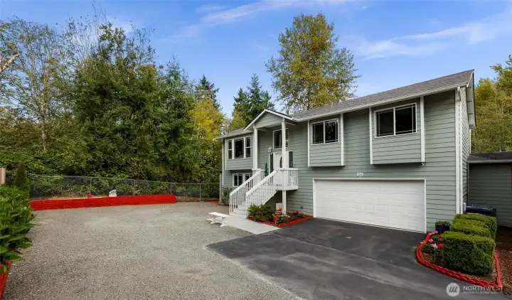 **Entertainer's Dream** Sitting at the end of a private drive, behind Heritage Park, w protected land on one side. The backyard is a HUGE deck w covered pinewood bar (Everything stays), covered deck off slider, & 3 insulated storage sheds! Upper deck w awning has view of pond to watch Eagles & Grey Herons. Insulated & finished 2 car garage for more entertaining space! Home has been lightly lived in, freshly painted inside/out, & is super clean!! Other features are 2025 water heater, 2021 roof/hardi plank siding/furnace/AC, granite counters, newer ss appliances, vaulted ceilings, electric FP w gas connection, theatre room in basement (decor can stay), RV/boat parking or 10+ cars. Pre-Inspected! Close to Mall, I5/405, Whole Foods & more.