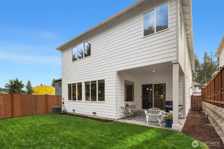 Stunning and modern 2,695 sqft home on prime lot in Bothell's Echo Park neighborhood surrounded by greenery, parks, play fields and an equestrian arena. Well designed home offers an open floor plan w/Chef's kitchen & formal dining area. Gas cooktop, wall oven, quartz counters & oversized island. Perfect for entertaining inside or out - kitchen steps to a covered patio & fully-fenced back garden. 2nd floor offers 4 spacious bdrms on same level & serene primary suite w/5 piece bath & walk-in closet. Loft-like lounge adds 2nd living area for media room or peaceful upper floor retreat. On-demand hot water, A/C, & quality finishes throughout. Perfect for multi-generational living and working from home with large office/den on main. Welcome home!