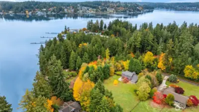Tucked away in one of Fox Island’s most peaceful settings, this beautifully maintained estate blends classic charm with modern updates. Set on a level 1.2+ acre property, it offers both privacy and tranquility. Recent upgrades include: a BRAND-NEW roof, new furnace, certified septic, mold-free treated attic, and a serviced propane system—providing lasting peace of mind. Perfect for entertaining, the home features covered porches and expansive decks with an outdoor bar for gatherings and year-round enjoyment. Upstairs, the primary suite includes a luxurious 5-piece bath, dual walk-in closets, and a cozy sitting area with its own fireplace. A connected shop offers the ideal space for hobbies, storage, or additional workspace.