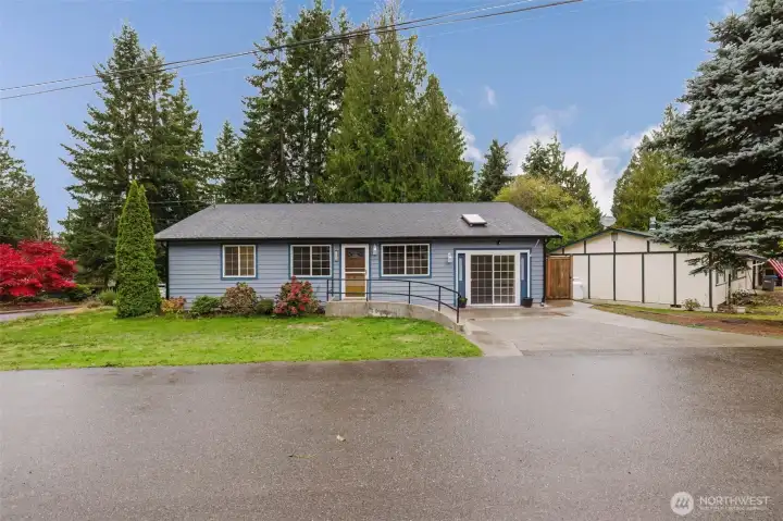 Charming 3 Bed / 2.5 Bath 1986 Rambler in Poulsbo, WA. Fireplace in living room for cozy nights. Located on a 0.16-acre lot in the desirable Miller Bay Estates community, this well-maintained rambler offers comfort and convenience. Features include a cemented parking pad with an ramp and handrail leading to the front door. The spacious backyard includes a sheds, small workshop, and dedicated garden space—perfect for enjoying quiet afternoons outdoors. Don't miss out—schedule your showing today!
