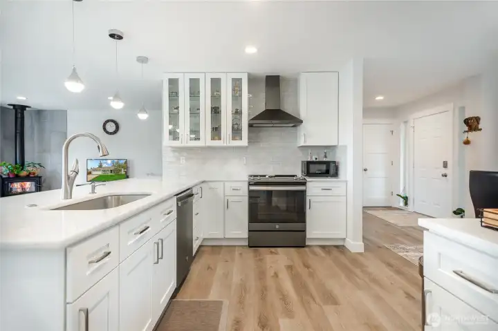 STUNNING VIEWS OF PORT SUSAN! A COMPLETE REMODELED RAMBLER IN THE COUNTRY CLUB COMMUNITY! This gorgeous home features brand new kitchen cabinets, granite countertops, GE Black SS appliances including new washer/dryer/water heater, restored woodstove and luxury vinyl hardwood floors throughout the house. New trim, doors, hardware, & fresh paint. Master bedroom has spacious barn door closets and its own walk-in bathroom with Italian tile frameless shower and a standalone tub. RARE DUCTLESS HVAC system in each room for energy efficiency (+ $15,000 in value). FRESH insulation in crawl space and attic including the replaced garage door. New concrete front porch with fenced front yard for your RV/Boat. 3 private beaches for walks and more.