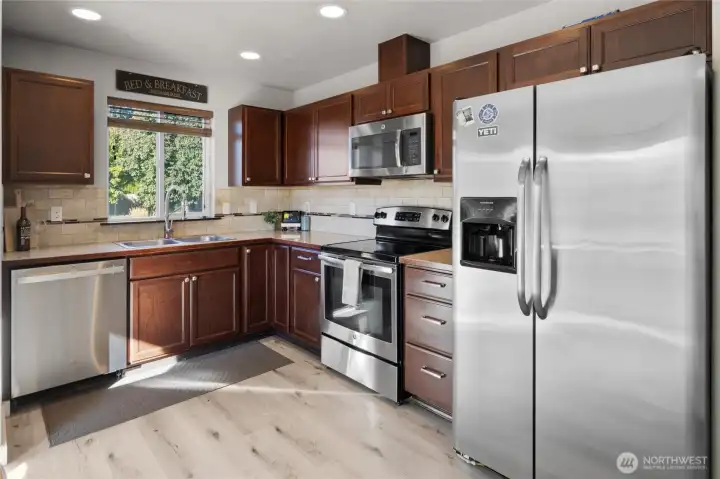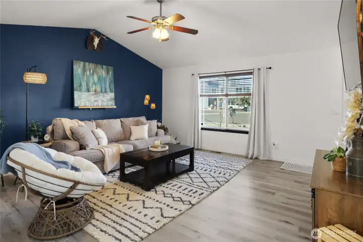 Welcome home to this turn key 3-bedroom, 1.75-bathroom home on a desirable corner lot. Spanning 1,160 square feet, the home welcomes you with a large living room featuring vaulted ceilings and beautifully upgraded throughout. The open kitchen and dining area flows seamlessly out to a spacious patio and a fenced backyard with underground sprinklers utilizing irrigation water. Relax & enjoy the primary suite with a walk-in closet and en suite bathroom, plus two comfortable guest bedrooms. Enjoy the convenience of a 2-car attached garage and a fantastic location with close proximity to downtown Ellensburg and CWU campus. This well-cared-for home is move-in ready!