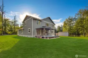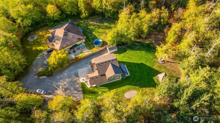 Welcome to Azure — a beautifully updated 2021-built home combining energy efficiency and modern design. The open layout features a renovated kitchen with GE stainless steel appliances, gas cooktop, and breakfast bar flowing into the living and great rooms with a cozy fireplace. Upstairs offers a spacious primary suite with bath and walk-in closet plus three additional bedrooms. The Main Floor offers a bedroom or study if main level living is needed. Enjoy 2.5 acres with sunrise views, a storage shed, 2-car garage, and RV/boat parking. Quiet yet convenient to shopping, dining, golf, and I-5. Experience the perfect blend of comfort and style at Azure.