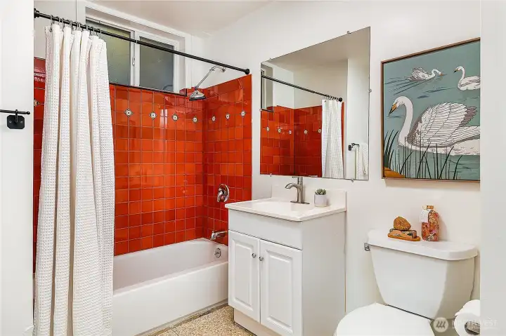 Mid-Century modern details in a classic American home. Pristine Terrazzo flooring & great hardwoods as well. Large dining room with a sunny south facing walk-out deck. The big kitchen has tons of cabinets and counter space. Gorgeous bright living room has silk curtains that frame the full height windows. Big back yard with patio, a garden shed, and covered space. The walkout basement makes for multi-generational living, a rental, or just lots more living space. Great Flow, great efficiency, all copper and modern wiring. Please see the Narrated Video Walkthrough!