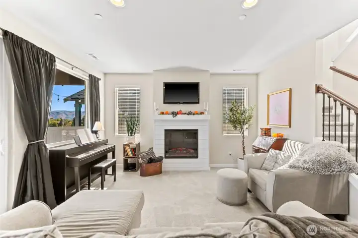Enjoy low-maintenance living in this centrally located home with mountain & city views. Close to local trails, this home offers the perfect balance of outdoor access and modern comfort. Main floor features a private bedroom with 3/4 bath, ideal for guests. The cozy living room includes an elegant electric fireplace, while the chef-inspired kitchen boasts a huge island, stainless steel appliances, a walk-in pantry and plenty of cabinet space. Upstairs, the primary suite offers en-suite with double sinks, a soaking tub, walk-in shower & large walk-in closet. 3 more bedrooms, a full bath, Bonus and laundry room complete the upper level. Outside a covered patio overlooks the peaceful irrigation canal trail perfect for relaxing or entertaining.