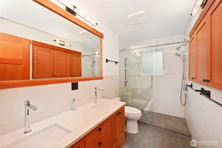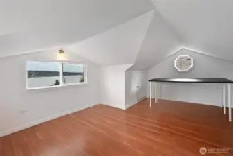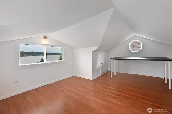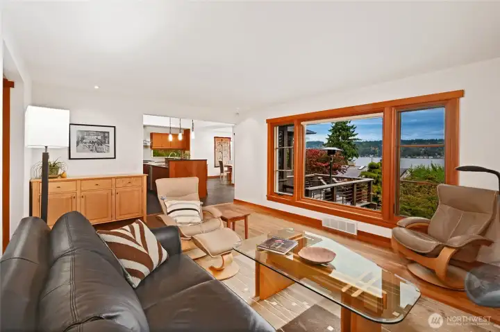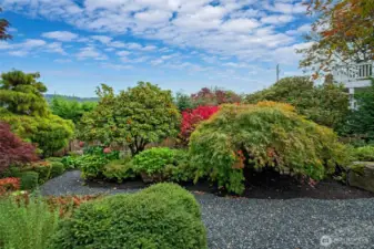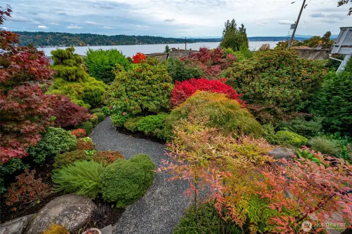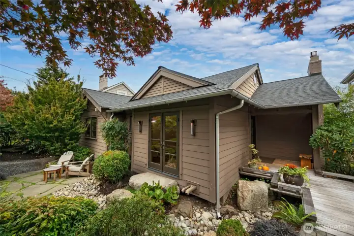Welcome to this NW Contemporary refined work of art transformed by an Asian-inspired remodel with fir trim, cathedral ceiling and skylights to bring in light. Modern kitchen opens to a view deck for relaxed indoor/outdoor living. Be captivated by sweeping lake & mountain views and gorgeous Japanese gardens designed by Al Kubota and current owners, showcasing vibrant colors in every season. Main floor has primary bedroom and flexible 2nd bed/office space. Finished spectacular view attic. Creative spaces abound! Downstairs is a rec room, non-conforming bedroom, heated studio/shop for gear, projects. Private alley below for boat/camper. Near B-G trail, the park, bus to Children’s. An in-city retreat blending serenity, quality and lifestyle!