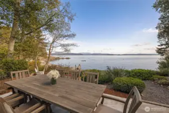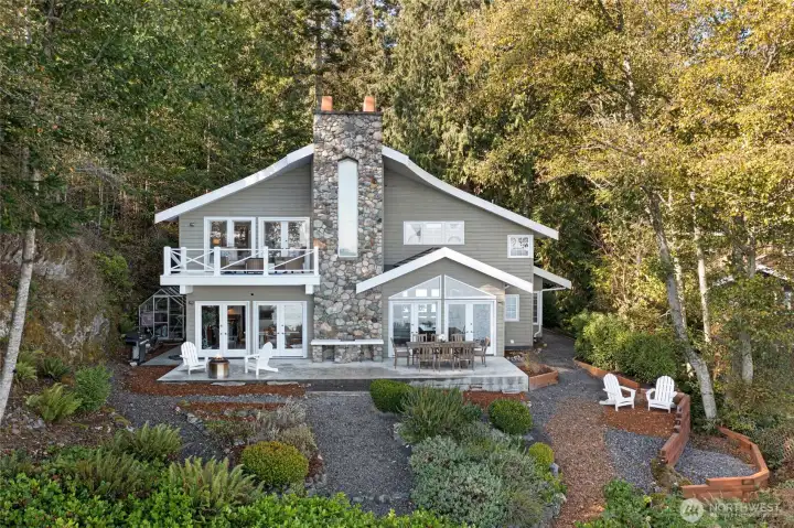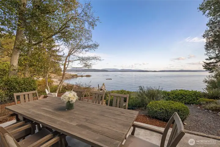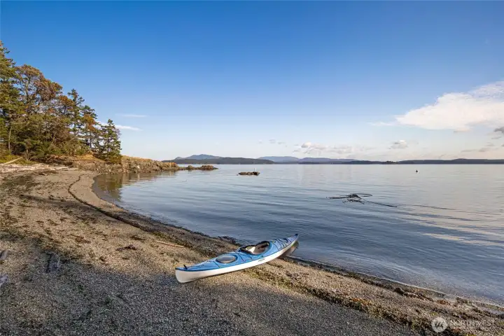 Experience refined waterfront living in Mineral Point, where elegance meets island tranquility. This east-facing, low-bank property with a private beach offers easy access, just steps from your patio to the shoreline for kayaking or beach combing. The main residence features three bedrooms and sophisticated living spaces designed for comfort and style. A one-bedroom guest house sits above the three-car garage, complemented by two versatile studio spaces ideal for art, woodworking, or recreation. Sold turnkey furnished with high-end pieces, this exceptional estate is currently in the process of permitting a mooring buoy and is perfectly situated between Roche Harbor and Friday Harbor for the ultimate island lifestyle.