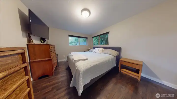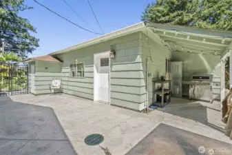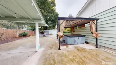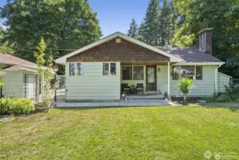 ONE BLOCK OFF ISLAND LAKE. The flow through the 3 bedroom, 1 bath main house rambler into the courtyard with iron gate entrance and shared with the entrance of the DADU with kitchen and 3/4 bath, 300sqf of living area and 200 sqf of garage storage space connected to your secluded open space low-maintenance yard w/ stamped concrete, covered BBQ area, hot tub, playground, trampoline & fire pit! New Septic system, fresh paint throughout peak-a-boo view of the lake! 2nd parcel included. Hardwood floors throughout main hm. Rental income, short term rental or multi-generational possibilities. This property was designed for entertaining!