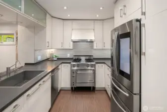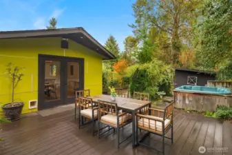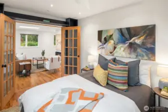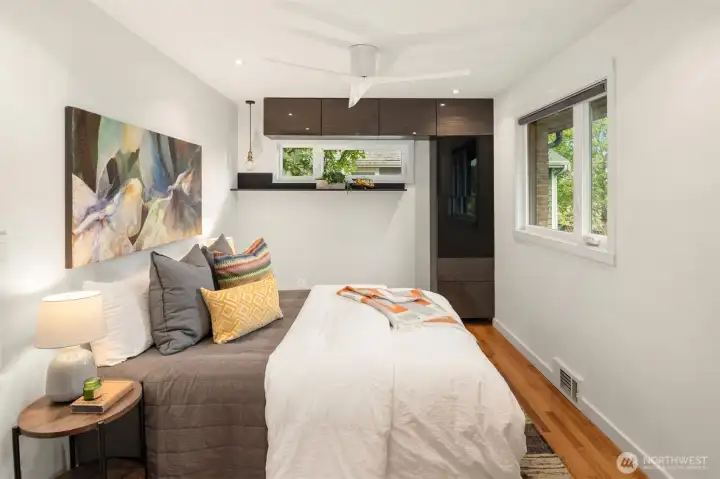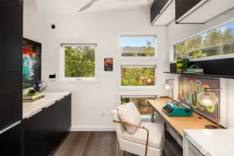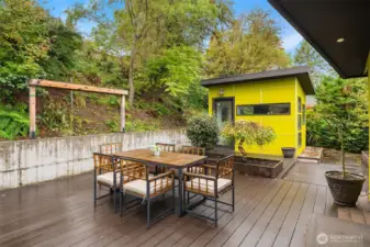 Privately perched high atop a secluded .27 acre dream lot, this luxurious turn-key stunner dazzles with modern finishes & mid-century style! Set amid ornamental trees with sprawling outdoor living spaces wrapped in majestic gardens, the epic grounds feature a dramatic detached office with vaulted ceiling, contemporary windows & sleek designer built-ins. French doors open to spacious dining room & impressive euro kitchen with commercial range & full tile backsplash. Oak hardwoods, fir doors, white trim, abundant built-ins, Anderson windows & copius layered lighting on smart dimmer switches throughout. Living room with french doors to deck, french doors to den/2nd bed & floor-to-ceiling gas fireplace. Moments to downtown & vibrant South Park!