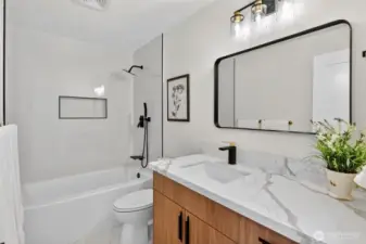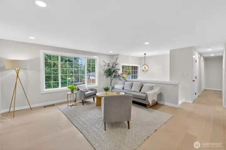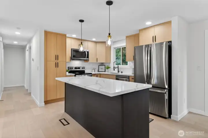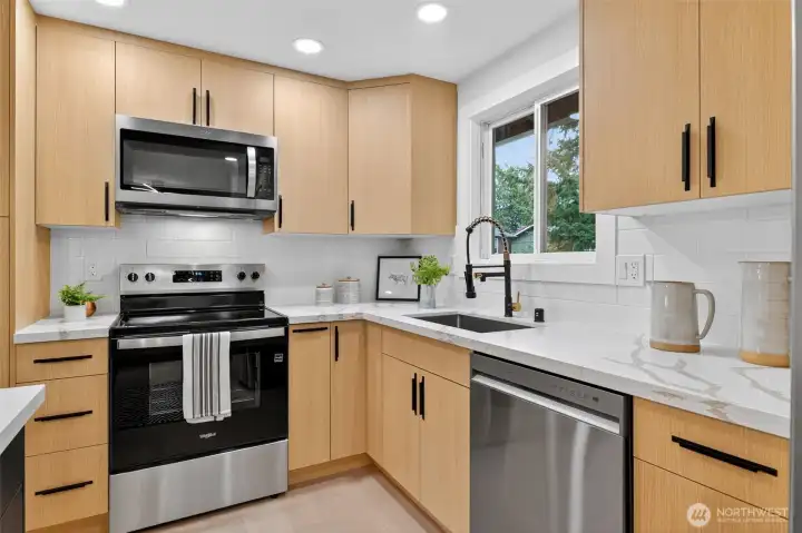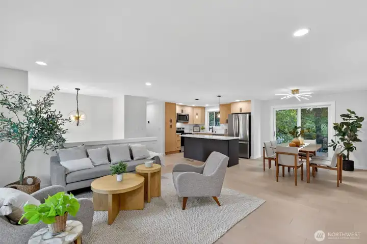 Welcome home to this beautifully remodeled gem that perfectly blends warmth with modern comfort! Step into an open, light-filled layout featuring fresh paint, new flooring, custom lighting, and a stylish kitchen with quartz countertops, stainless steel appliances, and a cozy dining area. The lower level offers two spacious bedrooms and a flexible living area—ideal for guests, a home office, or a playroom. Enjoy outdoor living on the brand new maintenance-free deck overlooking the fully fenced backyard—perfect for gatherings, gardening, or play. An updated electrical panel ensures modern safety, and the attached 2-car garage adds convenience. With easy access to I-5 and I-405, this pre-inspected home truly has it all!