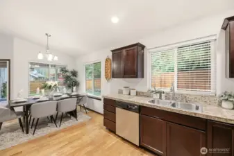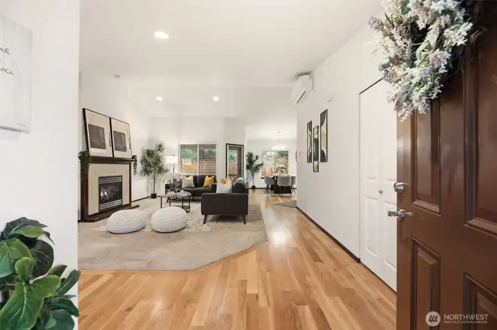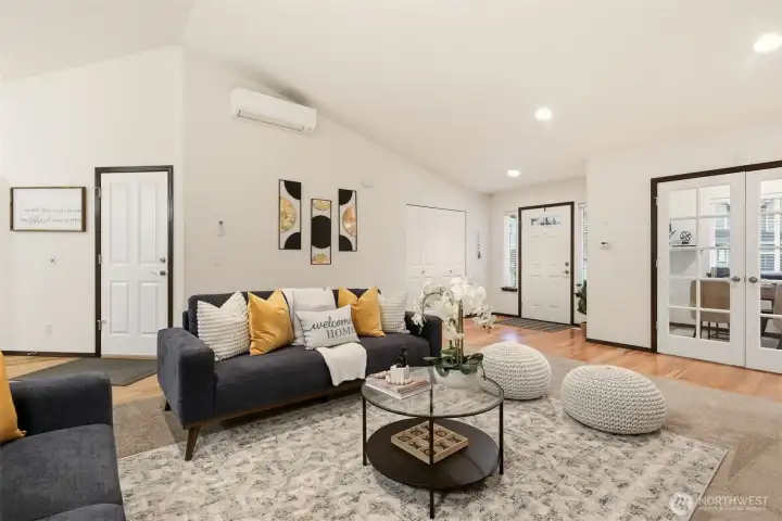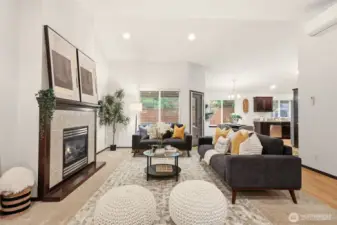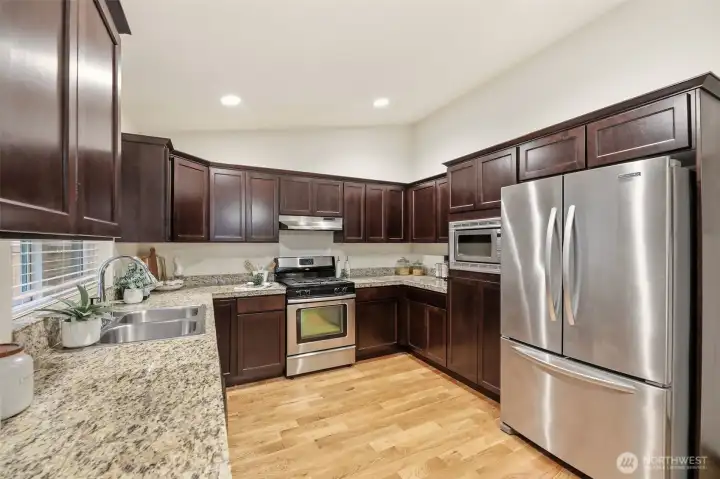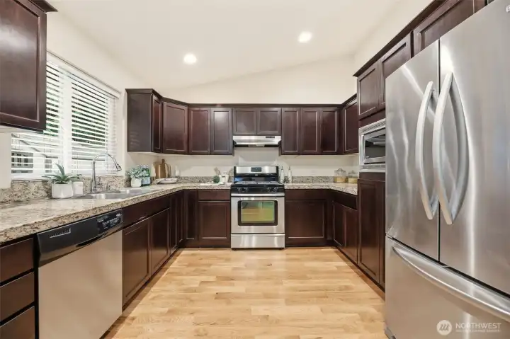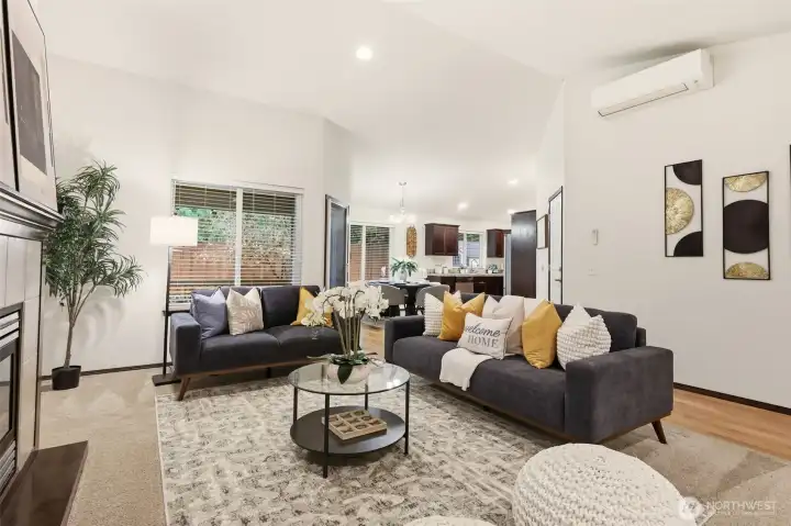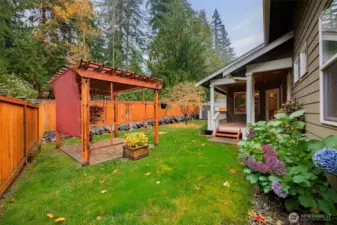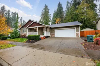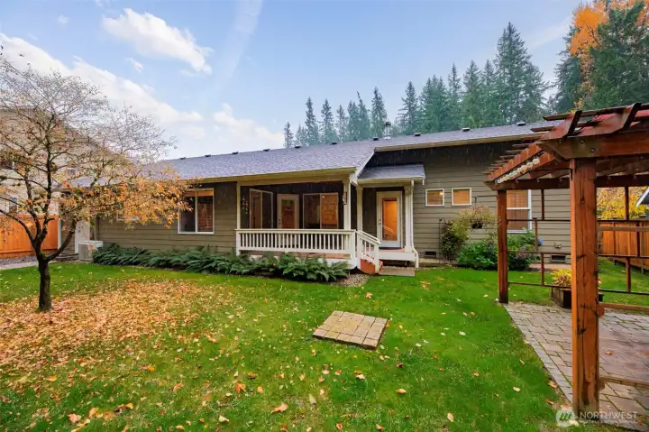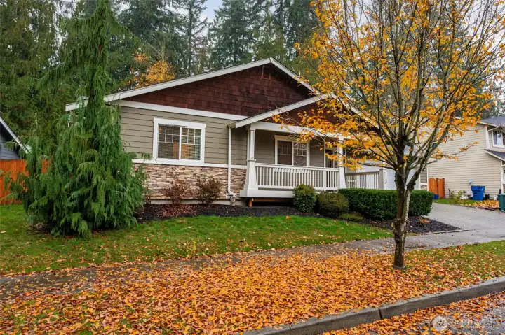 Newer rambler in an idyllic location w covered front porch. Great room design w living area featuring gas fireplace. Flow into the kitchen adjoining a delightful dining area. Vaulted ceilings & ample windows bring in natural light. Warm kitchen offers granite counters & stainless appliances. In the primary suite you'll find dual closets, backyard access & an en-suite w walk-in shower, soaking tub & double vanity. Two add’l bedrooms complete the layout, one a flex room w glass French doors for office, study or hobby use. Back covered deck is a showstopper overlooking the private yard. Pergola & firepit pad elevate outdoor living. Larger garage + garden shed. Home features forced air & mini-split AC. Minutes to amenities & easy commute.