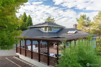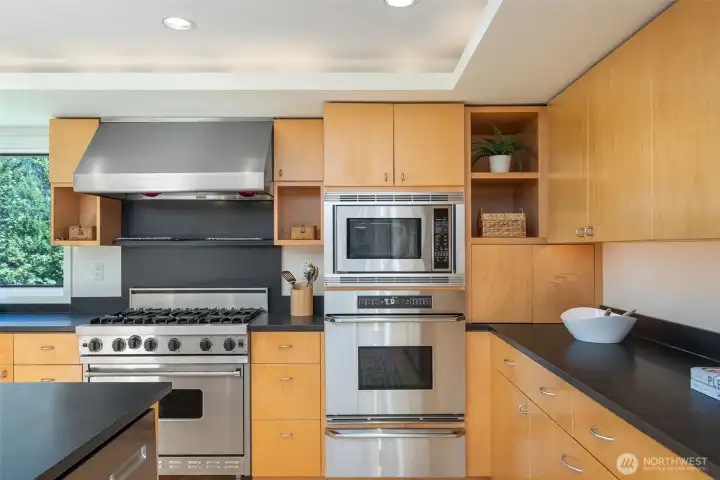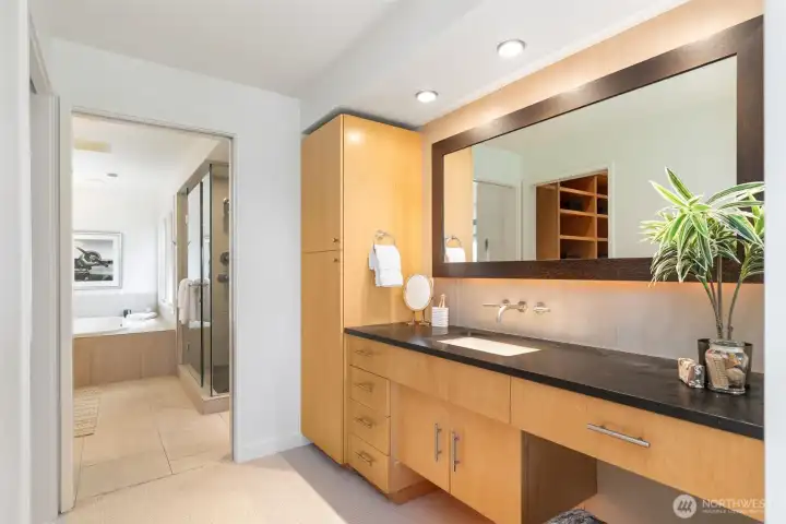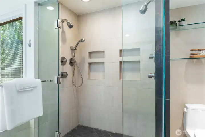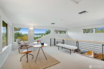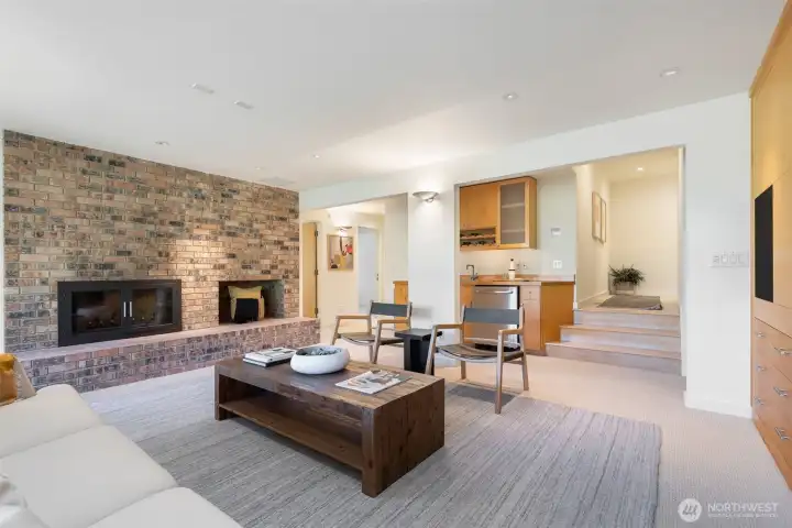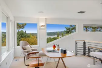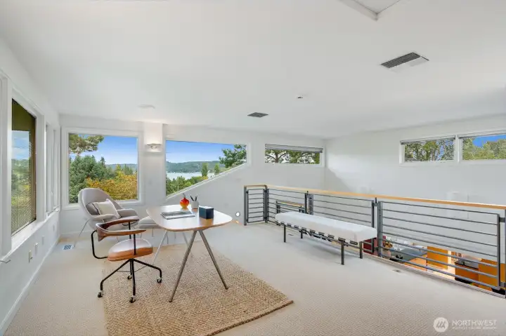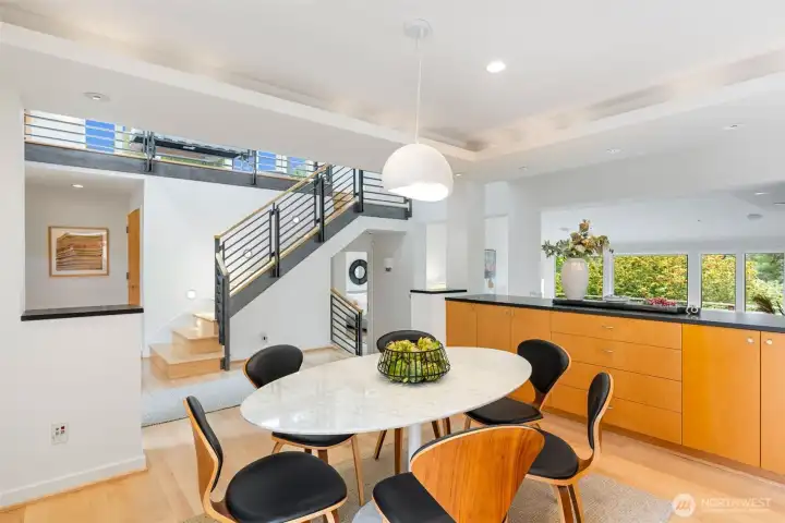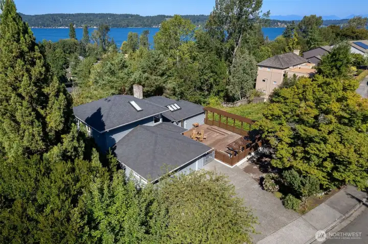 Perched above the Burke-Gilman Trail in sought-after Inverness, this 5,500 sq ft custom home offers Lake Washington and Cascade views and refined luxury throughout. A chef’s kitchen with high-end appliances, custom cabinetry, and a 3-tap drink station opens to a spacious entertainment deck. Two primary suites, two additional bedrooms, a lofted office, media room with wet bar, and personal gym provide versatile living space. Updates include new maple hardwoods, fresh paint and carpet. Custom closets and built-ins, three fireplaces, and decks on every level—making this a rare offering.