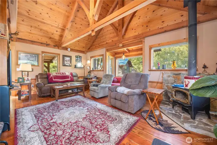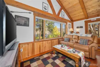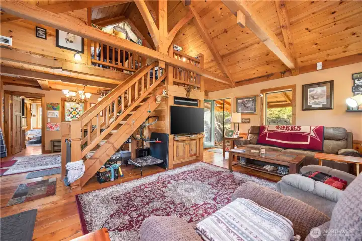 Commanding Timber frame-style home + ADU is incorporated into th 33-acre hillside of the southshore of Lake Chelan. Perched above the shorelines 16495 S Southshore offers a private & pine-filled setting with stunning views of the lake & Northshore terrain, bordering endless acres of WA State public lands. Primary built in 1995 is a 2 bed/ 1 bath, 1,514SF, 2-story home with reclaimed timbers & hand selected wood integrated throughout. ADU built in 1999 is a 1 bed/ 1bath, 540SF separate unit offering a full-fledged kitchen & similar timbers & wood embodying a quintessential cabin. Property pumps water from the lake, offering both irrigation & domestic uses, under ground power cabinet from PUD + 3 bed septic. Absolutely a breathtaking setting.
