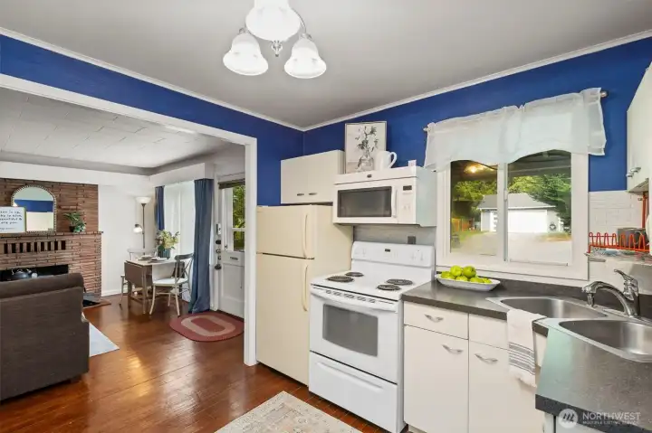 Charming move-in ready 2-bedroom, 1 bath home! Great location with backyard overlooking Lulu Haddon Park and just minutes to shopping and dining. Spacious living room with hardwood floors and cozy wood stove. Large kitchen with tons of cabinet space. This well-maintained home has fresh paint and new trim throughout. Efficient mini split heating and air conditioning. Spacious back yard with storage shed with garden space, carport and metal roof!