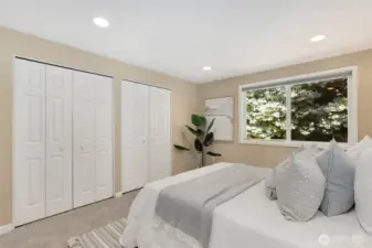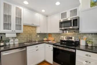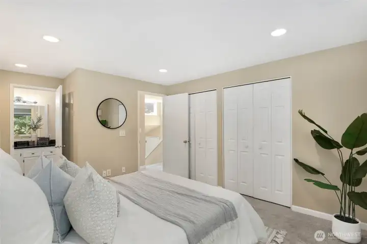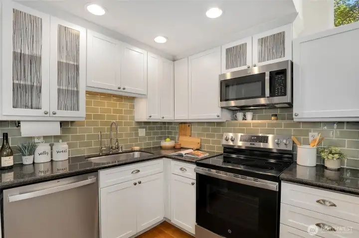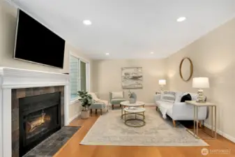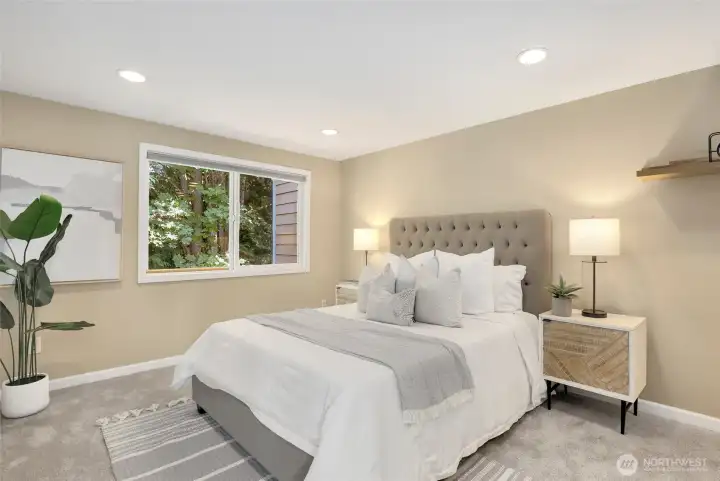 Updated turn-key townhome in a prime Juanita location! This end unit has just one shared wall, overlooks a green space and creek, offering privacy. The lower-level open living area features a fireplace, dining space, updated kitchen with new stainless appliances, and a refreshed 1/2 bath and laundry with Bosch washer/dryer. The dining room opens to a new composite deck and partially fenced yard overlooking the greenbelt. Upstairs offers new carpet, a primary with updated bath, and a second bedroom with bonus space for storage, nursery, or hobbies. Brand-new hot water tank, attached garage with epoxy floor, upper-level storage, driveway, and guest parking. Easy access to I-405, Juanita Beach, downtown Kirkland, shopping, and tech companies.