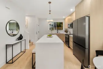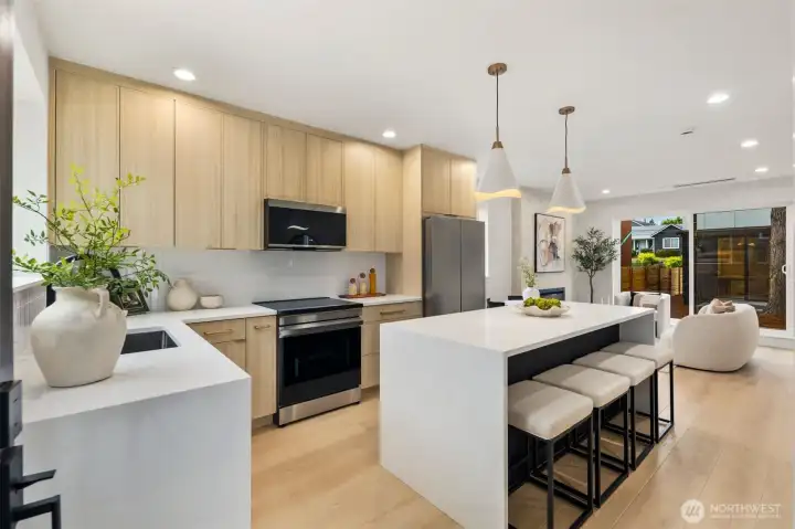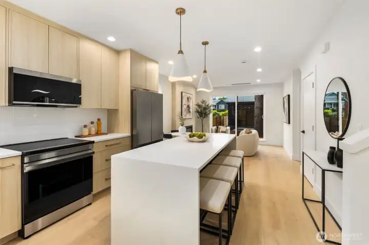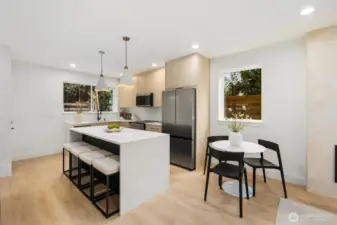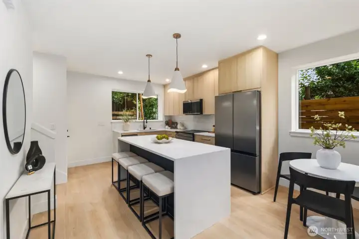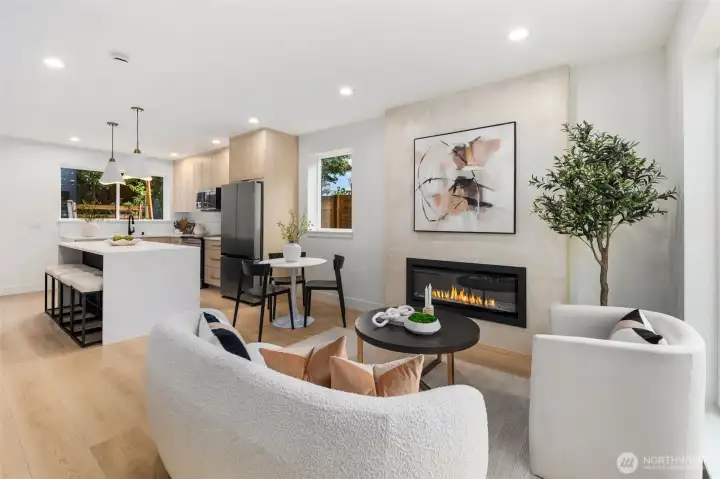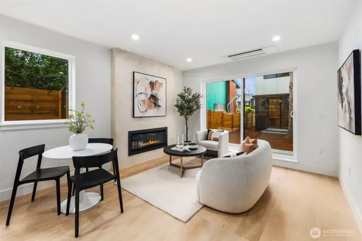 Rare find in the Hillman City neighborhood. Nestled in the back. Has its own 1 car garage and plenty of street parking. Lots of upgrades and features. Open floor plan with abundance of windows. Kitchen with quartz counter tops and full backsplash. Stainless steel appliances. Recessed lighting throughout. Great room concept with dining room and fireplace. Fireplace for those cozy days. Split systems for efficient heat and A/C. Luxury vinyl planks throughout. Dual sinks in primary bath. Vaulted ceilings in 2nd floor. Tile in bathroom floors, walls, tub and shower surround. Check out this modern beauty.