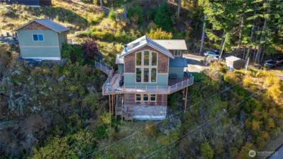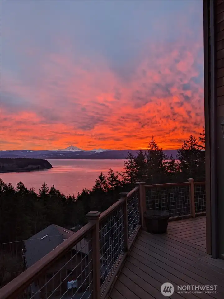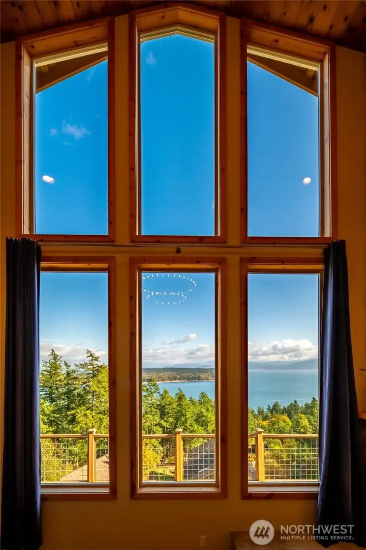 For those who treasure nature and admire true craftsmanship, this rare find is perfectly positioned with breathtaking views of Mt. Baker, the Sisters, Portage Island, Hales Passage, and the Canadian Coastal Range—offering a true scenic masterpiece. Meticulously cared for, this 3BD/2BA home radiates pride of ownership. Soaring ceilings and clerestory windows frame panoramic vistas, filling the home with ever-changing light and natural beauty. Enjoy newer appliances, a cozy wood stove, and a durable metal roof built to last. Nearly an acre of native landscape with sculpted stone outcroppings provides tranquil privacy, while a detached two-car garage with workspace adds flexibility. A separate space with its own exterior entrance offers versatility as a gym, guest quarters, or art/yoga studio. Homeownership includes access to a swimming lake, saltwater boat launch, and waterfront clubhouse for gatherings. Additional land available. A haven for those seeking lasting quality and serenity of extraordinary views.