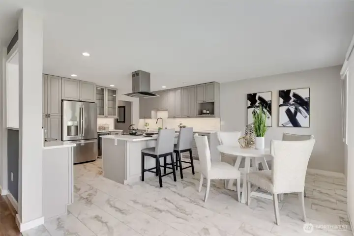 What a gem! Relax or entertain while overlooking Juanita Bay on Lake Washington. Enjoy your over 1400 ft² of living space w/gas fireplace, or lounge out on your elevated deck to get some fresh air. This home features a fully remodeled and opened up kitchen w/dining space with a view, updated baths, stainless appliances, newer paint, flooring, and tons of storage. Walk to local restaurants, shopping, transportation, & Juanita Park is right next-door! Full-size garage & assigned parking spot also included. Don’t miss this one while it lasts!