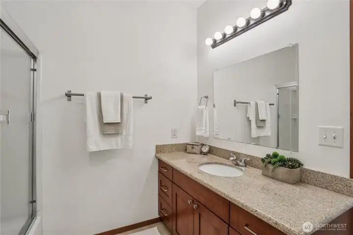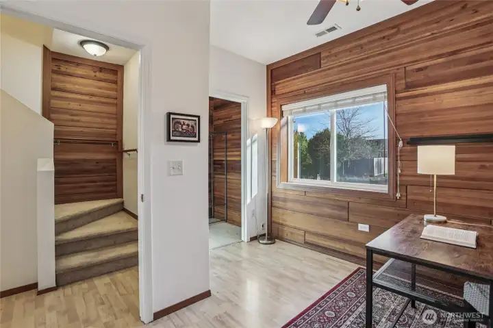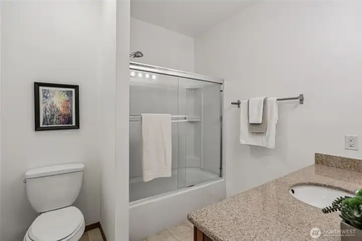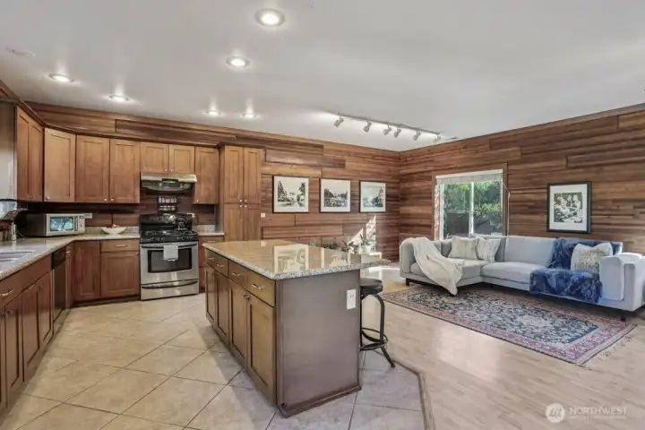Welcome to this unique Scenic Hill 4 bedroom, 3 bathroom house where cabin charm meets modern day living. Warm and inviting details with exposed cedar walls, gas fireplace, wood trim, and engineered hardwood in the expansive living area. Kitchen is equipped with a large island, custom cabinetry & slab granite countertops. Sliding doors in the living area lead to a spacious deck & fully fenced back yard. Guest bedroom & full bathroom on main level. The second floor has a primary bedroom with a walk in closet & en suite bathroom, plus two additional bedrooms & another bathroom. Spacious 2 car garage with additional room for storage. Close to Kent Station shops, restaurants, trails, parks, & playground. Easy access to highways for commuters.