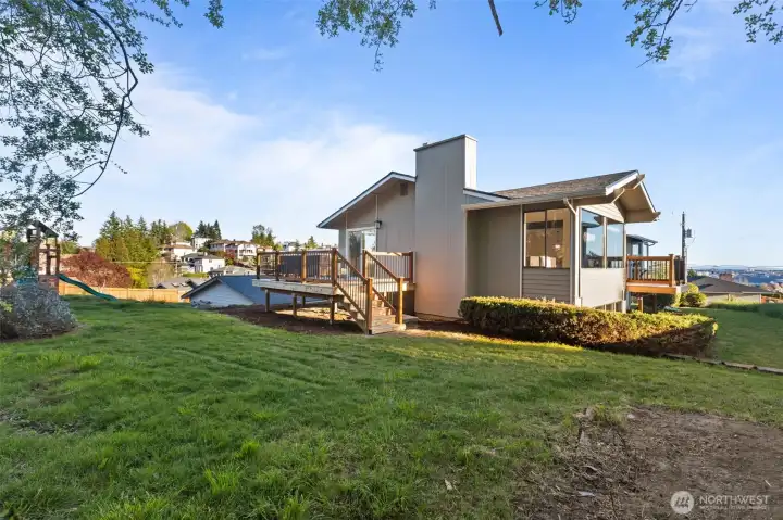 Perched on a quiet cul-de-sac in one of Tacoma’s most scenic neighborhoods, this fully updated custom home offers panoramic views of the Sound, mountains, and unforgettable sunsets from nearly every room. Bright upper level features formal living and dining areas, and brand new kitchen. New LVP throughout. Primary suite offers serenity and views, alongside a 2nd bedroom and two beautifully remodeled baths. Flexible lower level has an additional bedroom, ¾ bath, huge rec room, and a 2nd full kitchen—ideal for multigen. living, extended guests or rental income. Outside, enjoy the peace and privacy with expansive new decks to soak in the surroundings. This one-of-a-kind home delivers comfort, elegance, and jaw-dropping views—all in one!