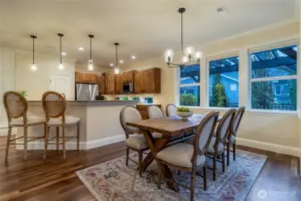 Nestled in the desirable Villages of Garrison Creek, this custom home showcases elegant craftsmanship throughout. An impressive walnut entry door greets you upon arrival, flowing into the beautiful refinished walnut floor, new interior paint, new carpet, and elevated luxury fixtures. The chef's kitchen features walnut cabinets with maple pull-out shelves, granite counters, and a Wolf gas range. The great room features insulated window blinds that let you choose your view and privacy level. Two main floor bedrooms include a spacious primary suite, while upstairs offers three additional bedrooms plus flexible living space. Relax and enjoy the wrap-around patio overlooking the duck pond and park like setting. Easy carefree living awaits!