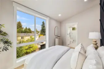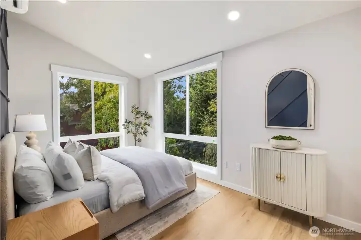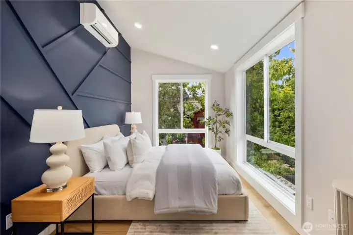 Organic Luxe meets modern living in this brand-new 2BR/2BA townhome in Greenwood/Crown Hill. Sophisticated finishes include wood-slat accents, custom millwork, and a designer kitchen with soft-close cabinetry and stainless steel appliances. The open-concept layout is filled with natural light from the windows, creating a seamless flow from living to dining. Upstairs, a spacious primary suite offers a private retreat with spa-inspired bath. Energy-efficient mini-splits ensure year-round comfort, while thoughtful design details add warmth and style throughout. Nestled near top-rated schools, Ballard’s vibrant breweries, Green Lake, parks, and direct transit to Downtown & SLU, this home blends everyday ease with timeless design. A Lifestyle!