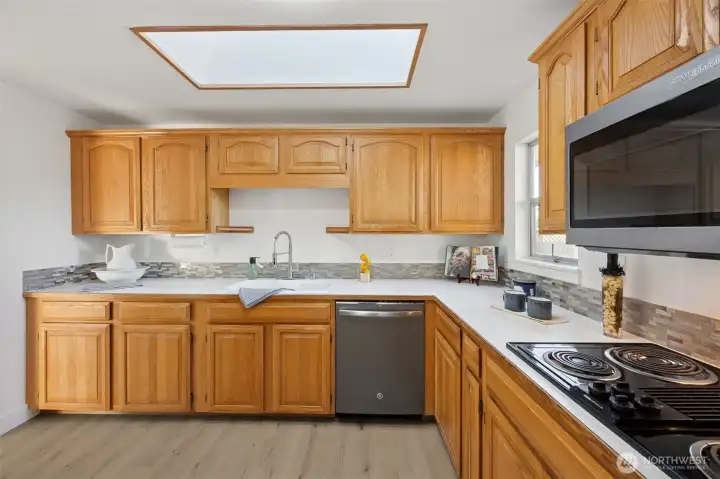 Fantastic opportunity awaits! This newly renovated 3-bedroom, 1-bathroom home is situated on a fully fenced, generous 7,314 SF lot in a quiet residential neighborhood. A modern interior, new blinds, new trim, new waterproof Luxury Vinyl Plank flooring, new carpet in bedrooms & new light fixtures. The refreshed bathroom showcases new vanity, flooring, toilet and lighting. New full size washer & dryer! The functional kitchen boasts new stainless-steel dishwasher, new side by side refrigerator and microwave. This charming rambler has a generous, level yard with a covered patio to enjoy year round, outdoor electrical and an outbuilding! A one car garage with cabinets stay, close to schools, shopping & amenities. Welcome to your new Home!