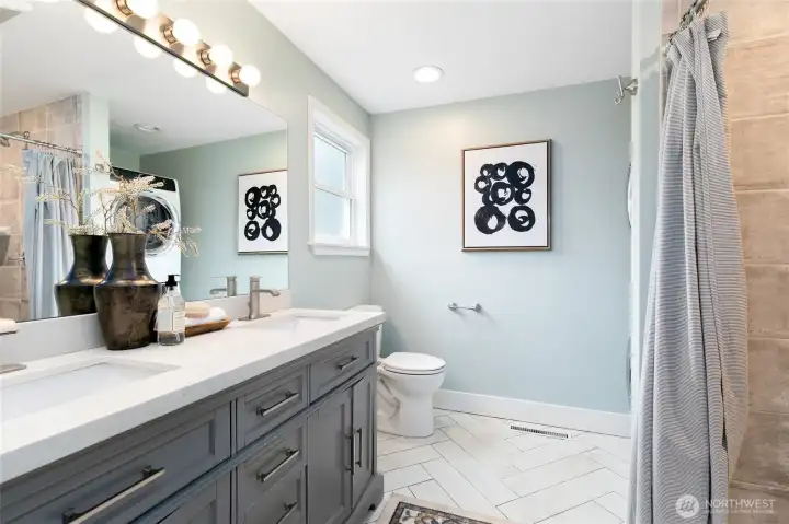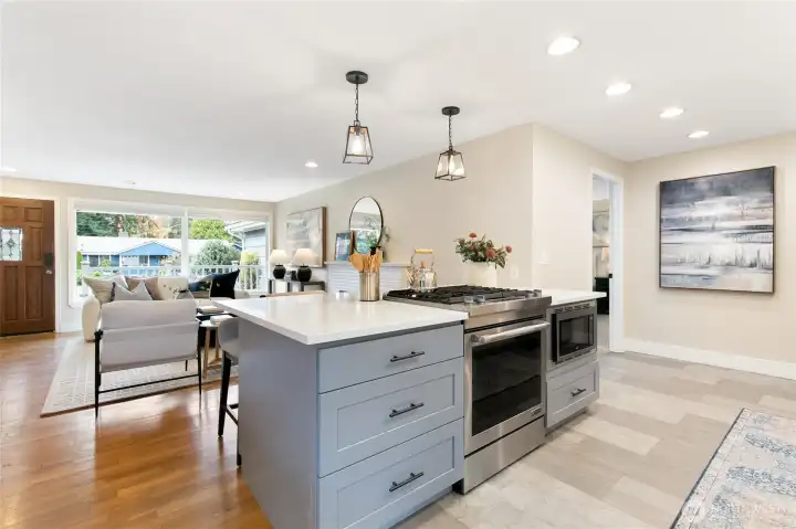 An updated and spacious mid-century rambler in the convenient Haller Lake neighborhood. This single-level home offers 3 bedrooms plus a versatile bonus/family room or potential 4th bedroom featuring a second fireplace—perfect for flexible living. Enjoy original hardwood floors, updated windows and modernized electrical. The sought-after floor plan opens to a large deck and patio overlooking a fully fenced, expansive backyard with a hot tub for relaxation. Ideal commuter location close to light rail, major bus lines, I-5, and Highway 99. A rare find!