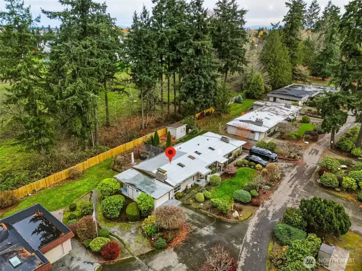Combining comfort, convenience, and resort-style living, this beautiful Edgewood home is situated in the desirable Westside Wood 55+ community. This condo features two bedrooms, one bathroom, and just under 900 sq ft. of cozy comfort. The open-concept living area features a vaulted ceiling, a wood-burning fireplace, and expansive windows that let in tons of natural light. The primary suite offers privacy, a large closet, and direct access to a patio or secluded backyard. The home also includes an attached garage and ample storage. Residents enjoy resort-style amenities, all within a short walk, including a heated outdoor pool, a sports court/tennis/basketball court, a clubhouse/cabana with a kitchen area, and a sports court.