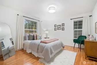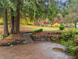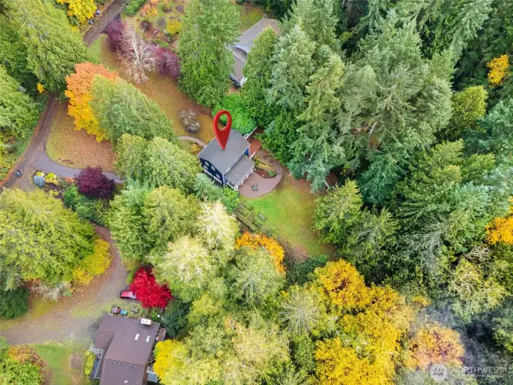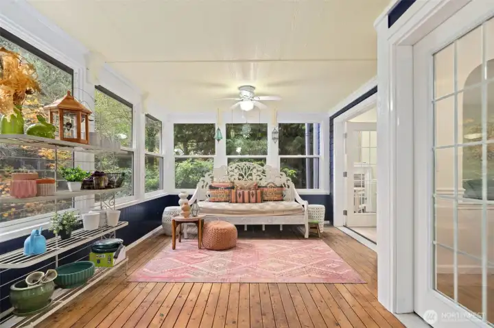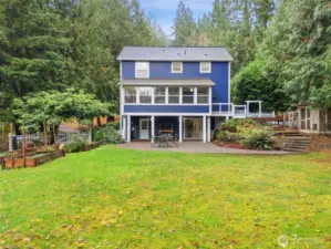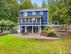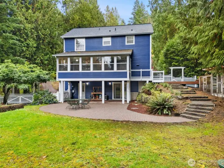 Amazing sought-after Poulsbo location, just a short drive to town! This charming New England-style 2-story home with tuck-under garage is beautifully situated on a 2.5-acre lot. It features extensive moldings, 9’ ceilings, hardwood floors, and elegant arched room divisions that add warmth and character. The “parlor” off the kitchen serves as a formal dining area. The kitchen boasts new quartz countertops and a cozy breakfast nook. A fireplace in the living room creates instant comfort. Finished lower-level room with full bath offers flexible guest or office space. Enjoy a sunny 3-season porch, a fenced backyard perfect for pets, and both covered and open paved patios—ideal for entertaining, relaxing, and enjoying the outdoors.