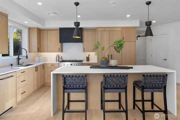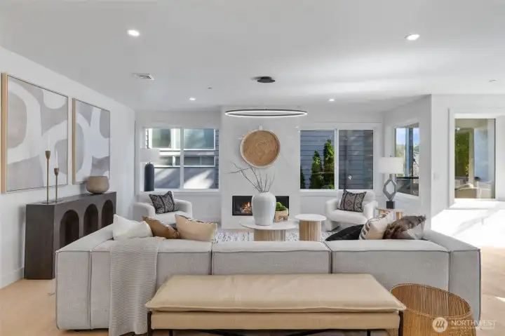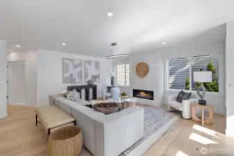 Modern Luxury in the Heart of Kirkland. Rare, fully remodeled condo steps from Kirkland’s marina, shopping, dining, parks. Every inch of this home was reimagined in 2025 by a prof designer to create a stunning blend of style, sophistication, and comfort. This bright, 3-bedroom, 2.5-bath residence features an open layout w/ walls of windows, sleek gas frplc, & large island, perfect for entertaining. The chef’s kitchen impresses w/ hi-end appliances, granite counters, & custom cabinets. Primary suite is it's own private retreat, w/ a spa-inspired bath. Soaking tub, modern shower, heated floors, & huge walk-in closet. Main floor unit of an exclusive 4-Unit building, elevator access from secure garage, 2 parking spaces, & private storage unit.