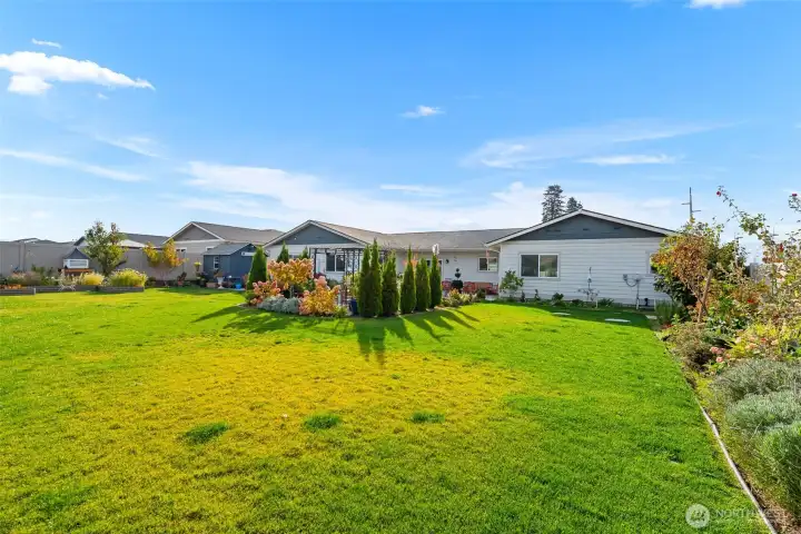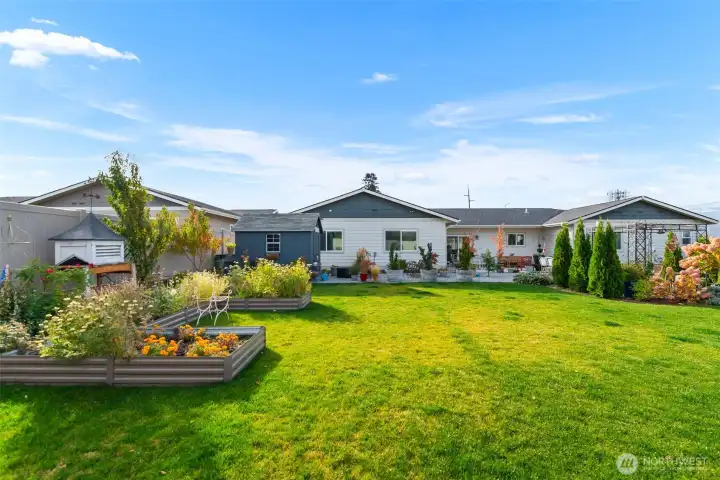 Discover this stunning single-level 3-bed 2-bath home (1,568 sq ft) paired with a fully separate 720 sq ft studio apartment perfect for multigenerational living or extra income! Main home has an open floor plan with show stopping kitchen including quartz counters & eating bar. The studio offers a full kitchen, spacious bath & private laundry, giving guests or tenants complete independence. Artistic style shines through every custom detail of both spaces with high-end finishes that make this home truly one of a kind. Step outside to a private backyard oasis with detailed landscaping, irrigation water and a fully fenced yard. With an attached 2-car garage, this property blends beauty, function, & income potential in one exceptional package.