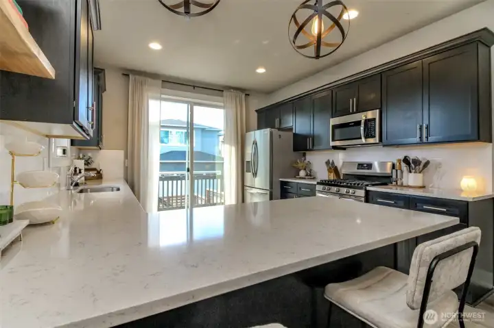This Tehaleh Charmer perfectly blends modern style with cozy comfort. Featuring 3-Bedrooms & 2 Baths. Step inside to a light filled living space that show cases the open concept living. Kitchen has sleek quartz counter tops that complement the rich cabinets creating a functional layout. Additionally the main level has a great office nook for convenience of working from home. Head down stairs to 3 bedrooms, Utility room and full bath. The fenced yard is low maintenance with just the right amount of space. Whether enjoying the covered front porch or covered back deck during all seasons. This home location is prime and close to all the ammenitys the community has to offer!