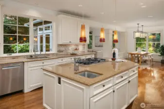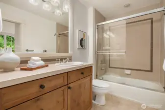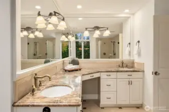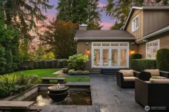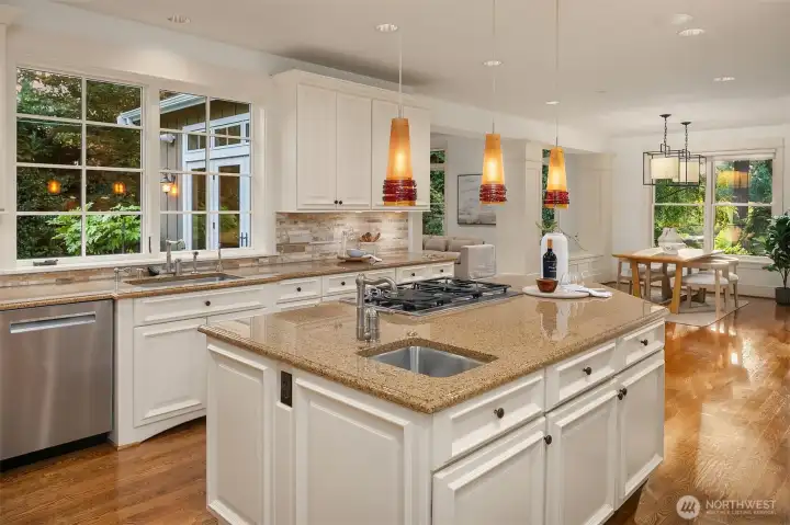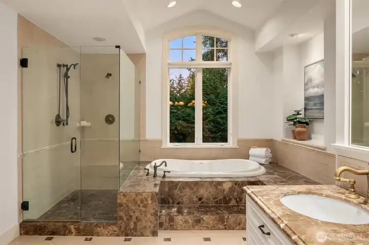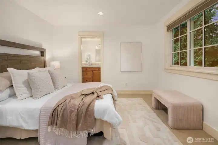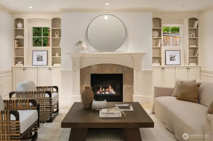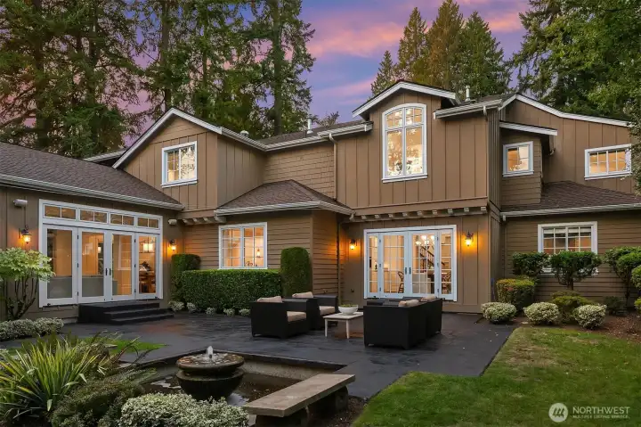 Nestled in the coveted Enatai community, this home blends timeless architecture w modern sophistication & shared waterfront access. Thoughtfully designed w extensive millwork & rich wood details throughout, creating an elegant backdrop for everyday living & entertaining. Formal living & dining room w French doors open to a verdant backyard w courtyard fountain. A rich wood paneled office provides space for work or study. The chefs kitchen boasts Sub-Zero & Dacor appliances, granite island w prep sink, & seamless flow to the dining & family room w fireplace flanked by custom bookshelves. Upstairs hosts 4 ensuite beds, including primary suite w a gas fireplace, sitting area & 5-piece marble bath. Minutes to DT Bellevue's shopping & dining.