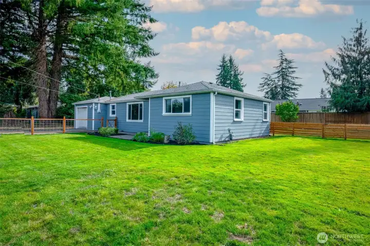 This charming mid-century rambler is nestled on a spacious lot in Central Lacey, combining comfort and convenience. Inside, you'll find a spacious great room with a coved ceiling and a cozy gas fireplace, perfect for gatherings. The home features two spacious bedrooms and has been thoughtfully updated with durable Hardi- siding and energy-efficient vinyl windows. Enjoy the expansive, fully fenced yard, ideal for outdoor activities, pets, gardening, entertaining, and future ADU potential! Hardwood floors located under living areas and bedrooms. Located near schools, shopping, and I-5 access, this Lacey bungalow offers the perfect blend of suburban tranquility and urban convenience. Schedule your tour today!