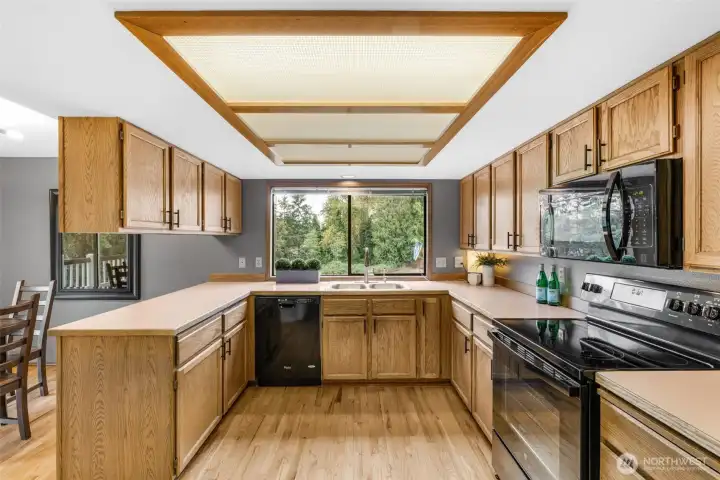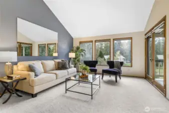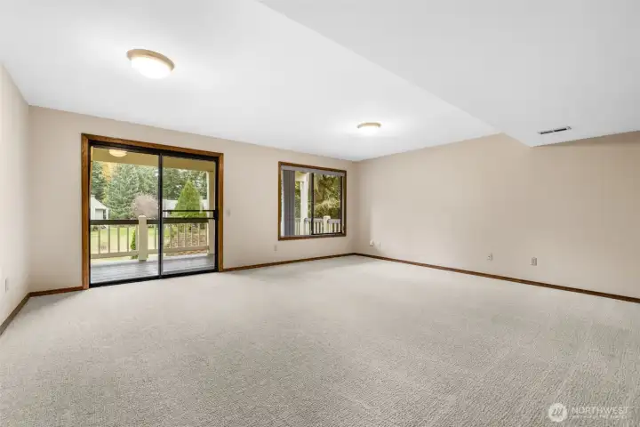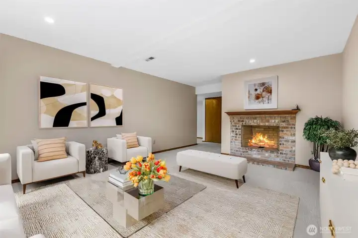 Perfectly nestled at the end of a small culdesac on a 1/4 acre lot, this refreshed daylight basement rambler has much to offer incl new int paint & carpet! Soaring ceiling greet you...walk into the living room with impressive floor to ceiling brick fpl, a wall of windows for abundant natural light & french doors to upper deck. Formal dining is adjacent. Kitchen offers newer appliances, plentiful cabinetry & breakfast nook. Main floor primary bedroom has an ensuite 3/4 bath & walkin. 2 add'l bdrms+full bath on main level. Lower level offers family rm w/brick fireplace for cozy nights, 4th bdrm, 3/4 bath & huge rec rm! Spacious storage room, newer roof, furnace & h2O. Lower deck overlooks expansive fenced yard & trails. Walk to conveniences!