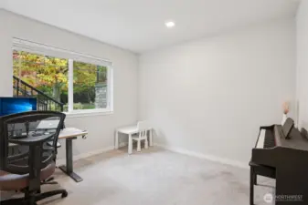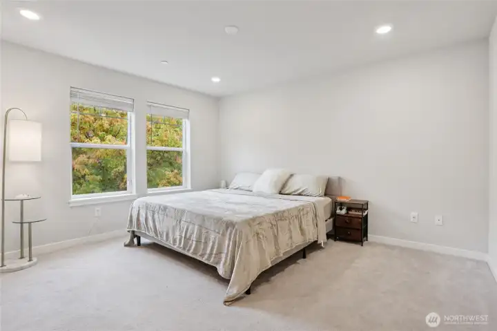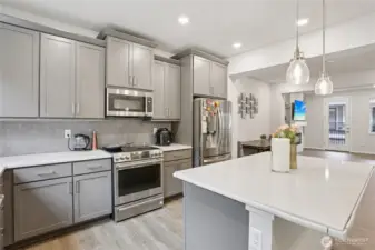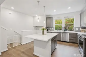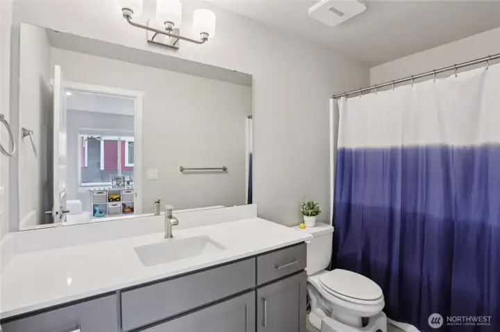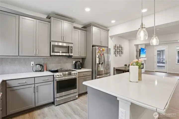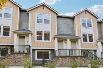 Experience modern living in this beautifully designed home with an open-concept layout and stunning upgrades throughout. The main level showcases gorgeous flooring and a bright living area flowing into a stylish kitchen with contemporary finishes and a striking backsplash. The lower level includes a private bedroom and bath, perfect for guests or flexible living. Upstairs, the spacious primary suite offers a sleek, modern bath, while a third bedroom features its own ensuite. Like-new condition and elegant design make this home move-in ready! Just a short block from the Amazon shuttle stop, enjoy ideal access for commuters and nearby amenities.