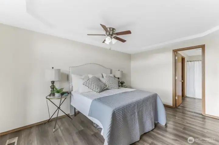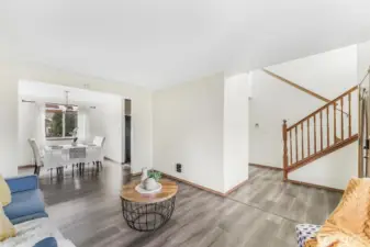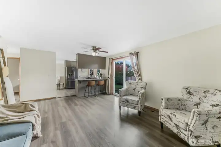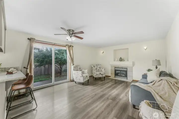 Move-in ready two-story home featuring an inviting open floor plan. Spacious living and dining rooms with a cozy fireplace create the perfect setting for the entertaining or relaxing. The kitchen is centrally located, tucked between living area and dining area with convenient access to a sliding door leading to the fully fenced backyard. Upstairs includes three generous bedrooms, including primary suite with a full bath, double sinks, and a walk-in closet. 2.5 baths, and a two car attached garage. Conveniently located near JBLM, schools, dining and all local amenities. This home offers comfort, functionality, and a great location all in one.
