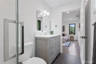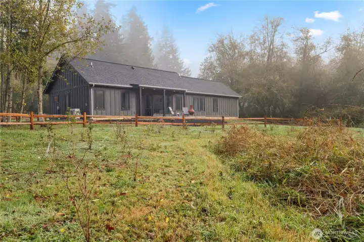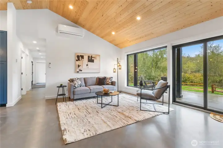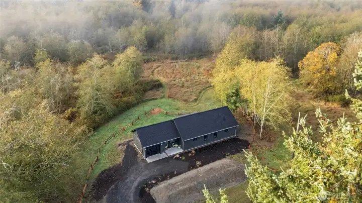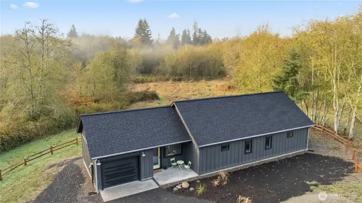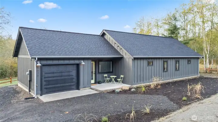 This brand-new, custom home blends luxury and serenity on 2.52 peaceful acres with no HOA and just minutes from Kingston ferries and essentials. Inside, enjoy heated concrete floors, 9-foot ceilings, and a vaulted great room with gorgeous tongue-and-groove detail. The immaculate kitchen features custom cabinetry and premium finishes, including a pot filler above the stove for the aspiring chef. A thoughtful layout separates the primary suite from the additional bedrooms, creating an open, functional flow that lives larger than its size. Enjoy slow mornings framed by custom windows and peaceful sunsets on the back patio overlooking your own private nature preserve. Move-in ready and truly one-of-a-kind.
